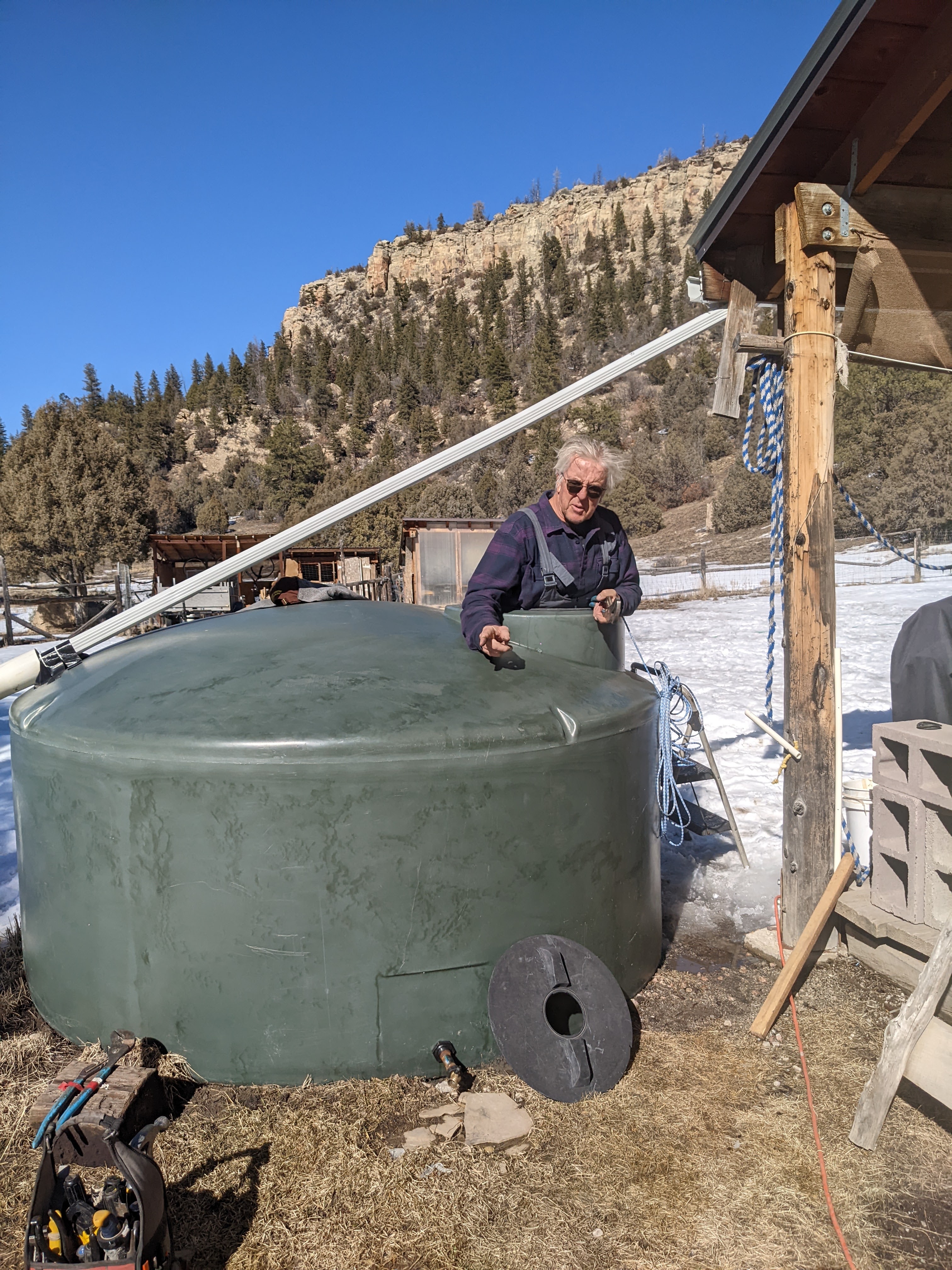 In the meantime, we are living off a generator. Above is the gennie we have for our camper, Pippin, but it is so easy to start and fuel efficient, we’ve ended up using it all winter here at the house. It burns about 4 gallons a week. It sits under a roof at the back of the house and it’s not too loud. We run it for an hour or 2 in the morning, so we can use the internet, make phone calls, and read the news online or look at emails. I do the NY Times Crossword. We watch Stephen Colbert with our morning tea and chocolate. Then we run it during the day as needed to power tools, or when I grade school work. And finally, a couple hours in the evening to stream a movie. Yup, we still have our big screen TV. Several nights a week we forgo the gennie and just read by lantern….very peaceful. Everyone should try just turning off their electricity sometime. There’s a disconnect switch in your main service box. Completely off. Quiet!