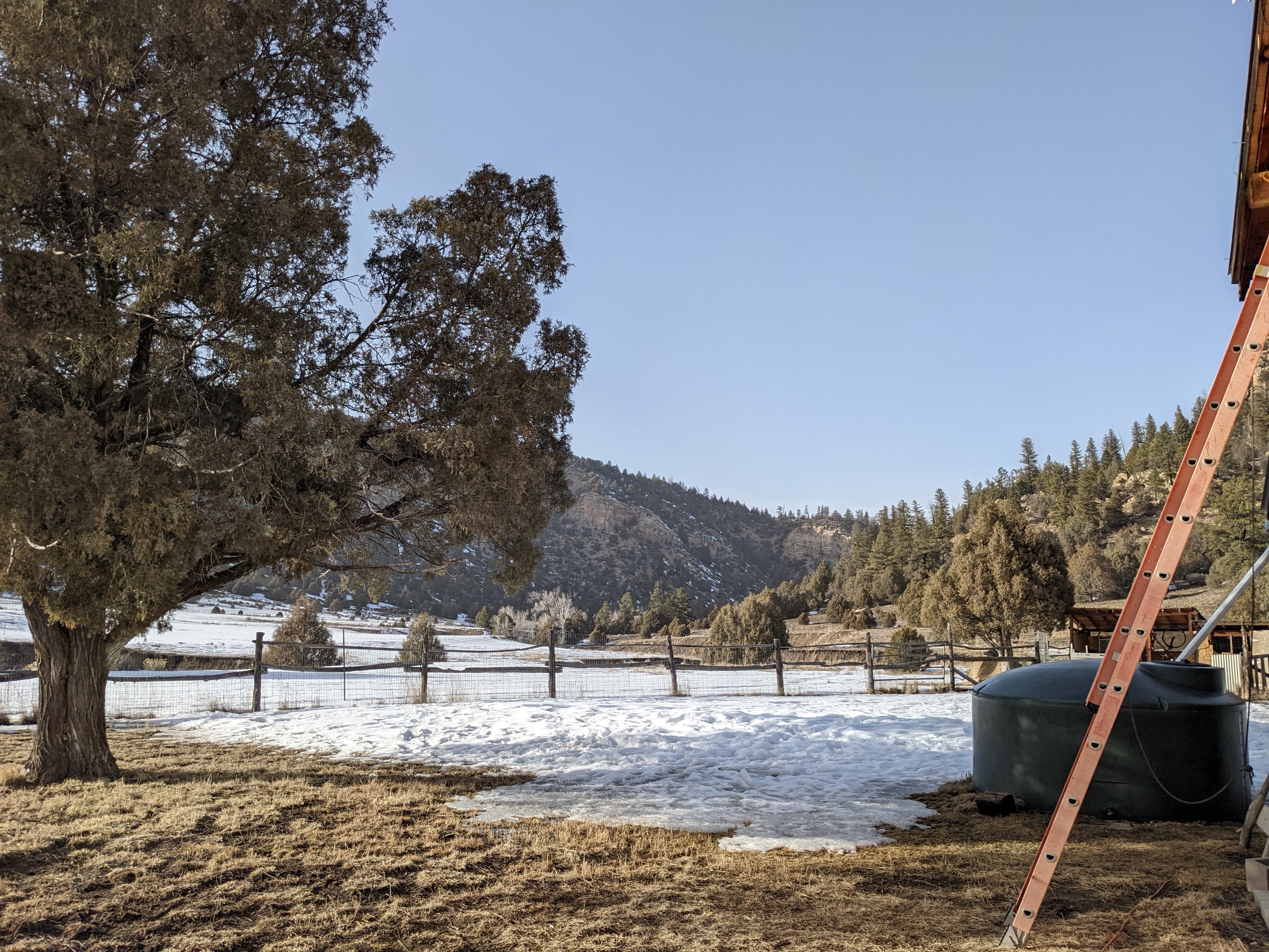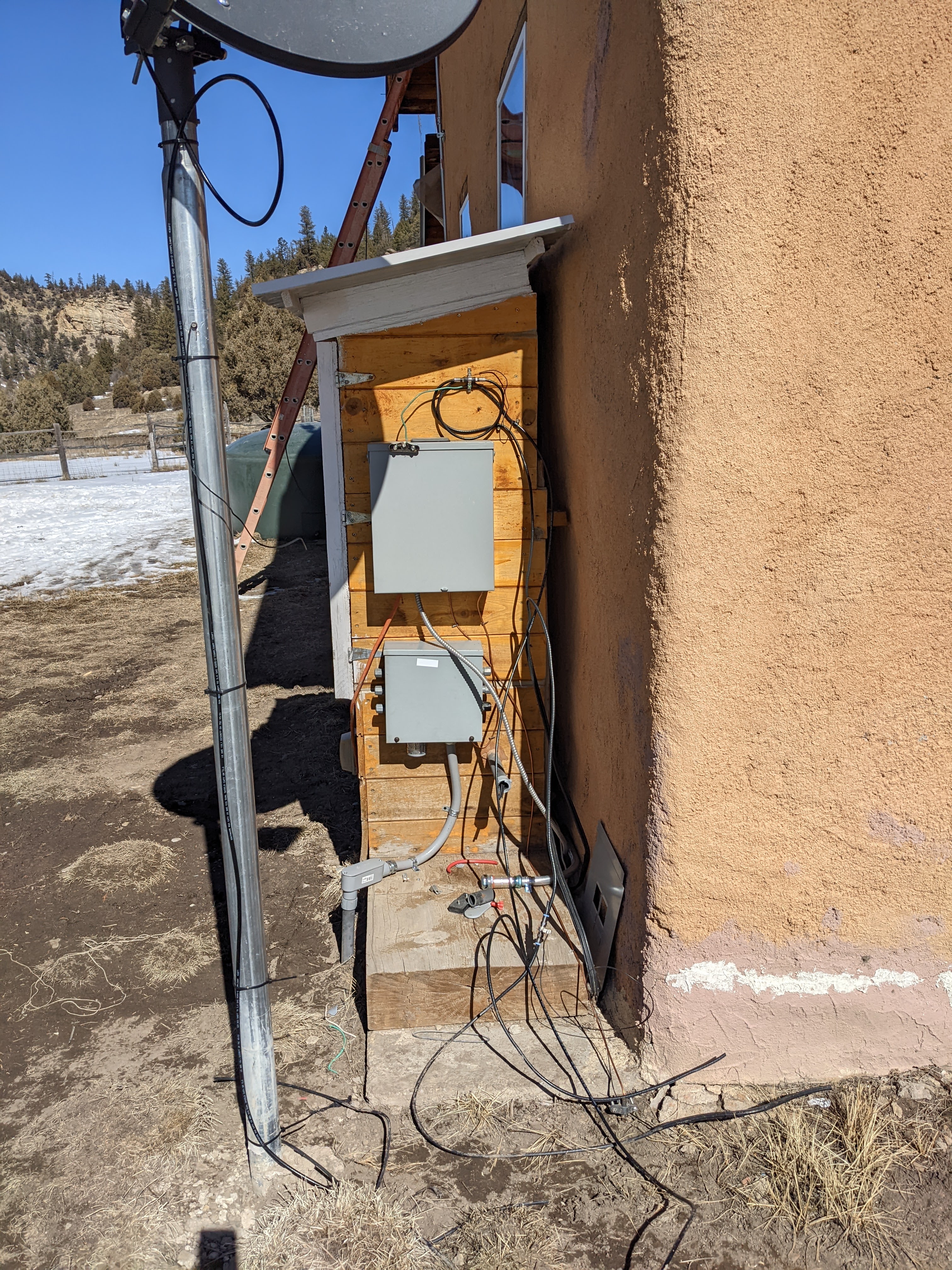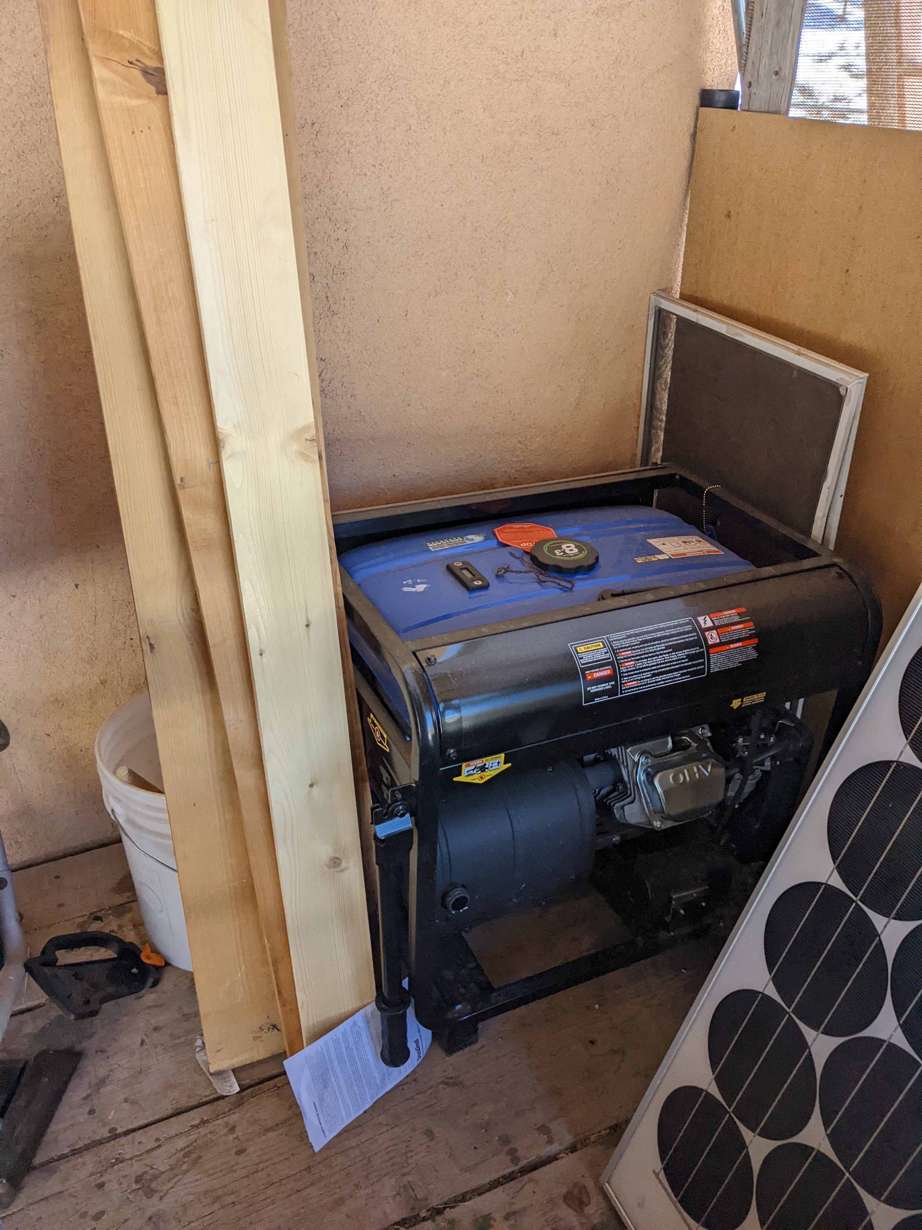 We have a second, back-up generator, a big monster that can run it all. But it’s a gas hog, and we haven’t connected it to the propane yet, so it’s sitting there on the porch. It will be what we keep for when a system needs repairs or the sun doesn’t shine for days, something that hasn’t happened yet, and maybe never will. It shines a lot in New Mexico.