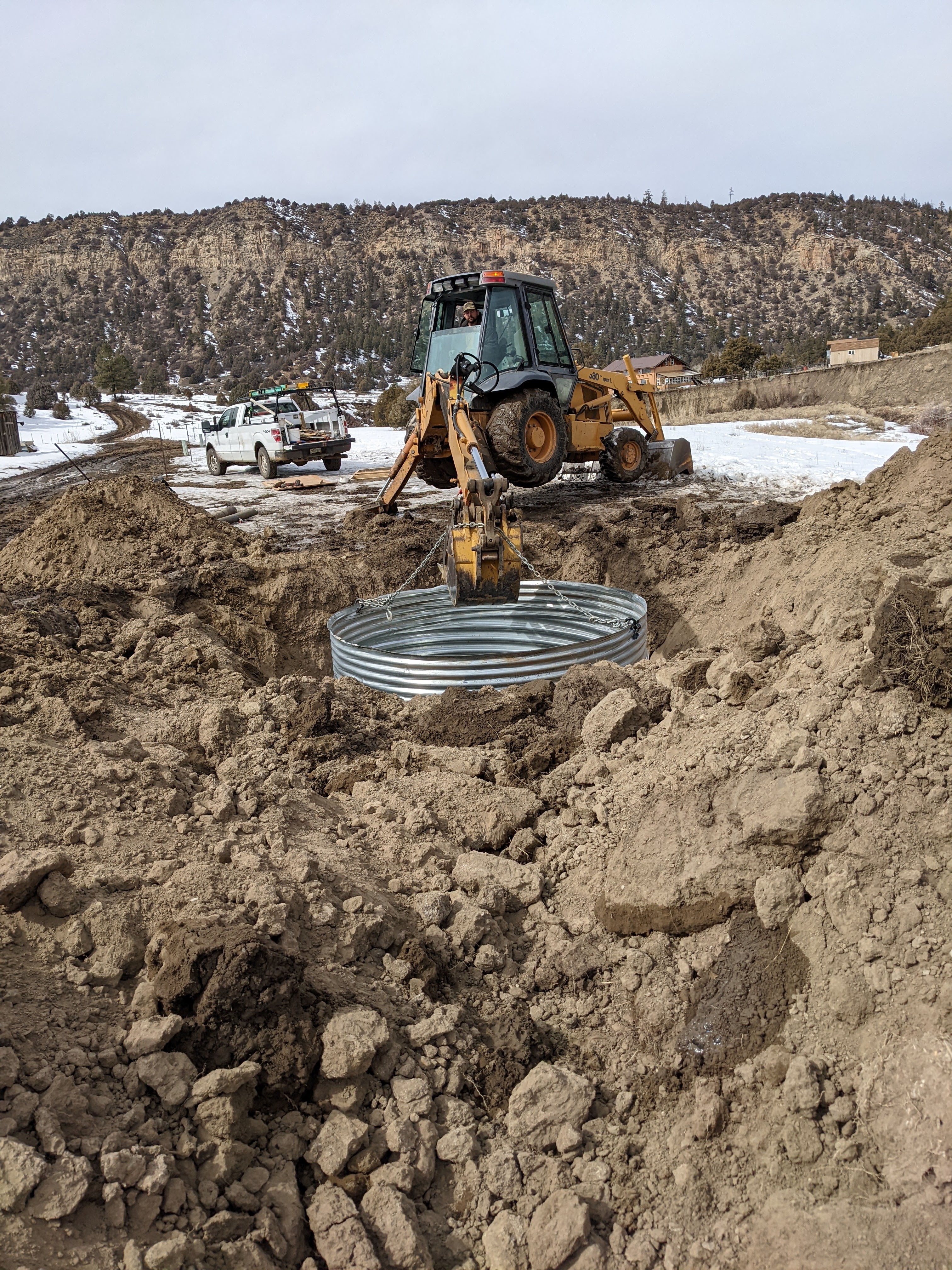 Now the choices seem endless. After much discussion, Alan and I have decided to have 3 separate solar arrays: a 660w array (above) for our 12v/DC refrigerator, composting toilet and most of the lights, a 1.6Kw array for the 12v/DC well pump because it is 750′ away and across the creek from the house (too far to trench wires affordably), and a big 8Kw system for all our 120v stuff: microwave, range, washer, and, of course, an electric Ford Lightning pickup!